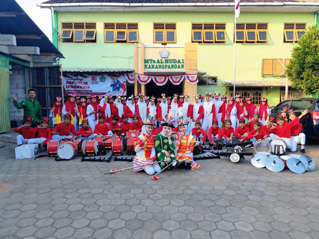 Karangpandan – Tim drumband MTs Al Huda 1 Karangpandan "GEMA NAWA KARTIKA" tampil gemilang dalam rangka Upacara Peringatan Detik-detik Proklamasi Kemerdekaan RI ke-80 yang berlangsung pada Minggu (17/8/2025). Dipimpin oleh Sofie dari kelas VIII A yang juga bertugas sebagai mayoret, Talitha dan Fernandita bertugas sebagai gita pati, penampilan mereka berhasil memukau seluruh hadirin dan menambah kemeriahan acara.